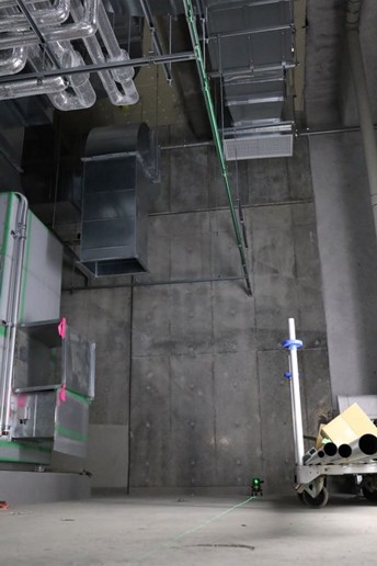 現場では、床や壁に緑色のレーザーが伸びている様子も見られました。